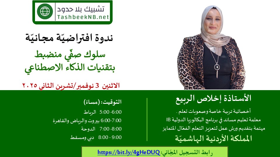 أهلا وسهلا بكم في منصّة مجتمع الممارسين التربويين الإفتراضي- تشبيك بلا حدود. هذه المنصّة هي فُسحة للتربويين من المنطقة العربية والمجتمع التربوي الأوسع لتبادل معارفهم وخبراتهم وتجاربهم التربوية. سيمكنكم تنزيل موارد تعليمية للاستفادة منها في صفوفكم وتحميل أخرى لمساعدة المعلمين الآخرين. ستتيح المنصّة أيضاً المجال لطرح المشكلا ت التربوية التعليمية التي تواجهكم والحصول على اقتراحات من أعضاء هذا المجتمع الإفتراضي. وتقدّم المنصّة لكم أيضاً فرصاً تفريدية (متمايزة) للتطوّر المهني المستمر.